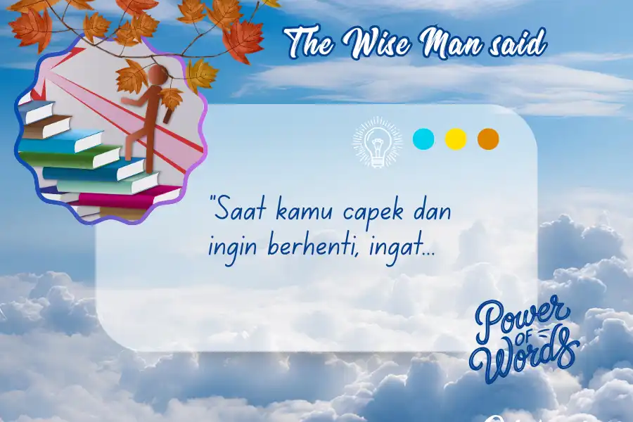 “Saat kamu capek dan ingin berhenti, ingat kenapa kamu memulai. Biarkan tujuanmu yang menarikmu maju.” (Sang Bijak)