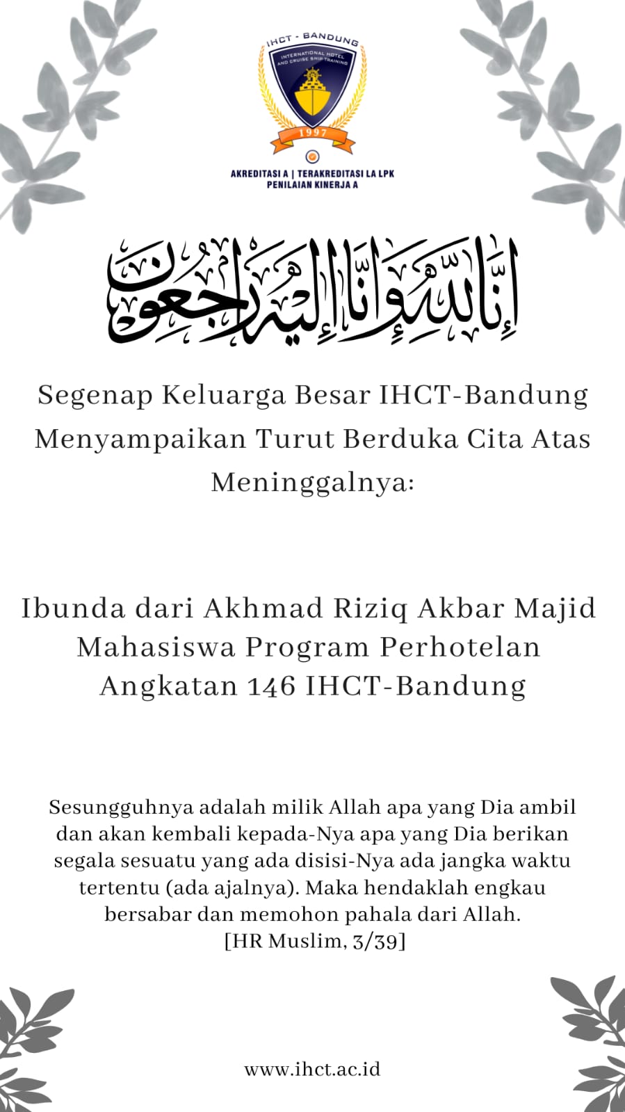 Segenap Keluarga Besar IHCT-Bandung Menyampaikan Turut Berduka Cita Atas Meninggalnya: